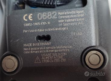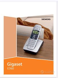 Telefono cordless Siemens Gigaset E360, completo di Stazione Base di ricarica, alimentatore, cavo telefonico, splitter a 2 vie, manuale PDF italiano, pefettamente funzionante, leggermente graffiato sul retro, vendo per inutilizzo.