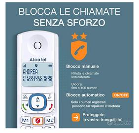 BLOCCATE I NUMERI INDESIDERATI: Il telefono fisso Alcatel F530 offre una semplice funzione di blocco delle chiamate grazie a un tasto dedicato, che permette di bloccare fino a 100 numeri. La modalità automatica consente inoltre di bloccare tutti i numeri tranne quelli presenti in rubrica.