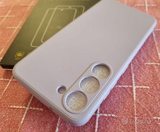 Vendo cover color lilla per Samsung Galaxy S23, insieme a due protezioni schermo in vetro WFTE.