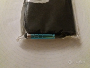 Cover a portafoglio per Samsung Galaxy Core GT-I8260. Colore nero. Mai usata né aperta, ancora in confezione originale integra. Contiene anche pennino per schermo touch.