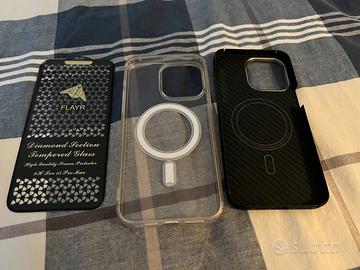 Vendo cover in Aramid / Carbonio per iPhone 15 Pro Max + Cover trasparente in silicone.
