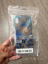 Cover custodia per iPhone X/XS con disegno mandala blu e oro, modello come da foto, tutti i dettagli sono visibili nelle immagini, acquistata e mai messa in uso per cambio teletono, per ulteriori informazioni non esitate a contattarmi in chat.