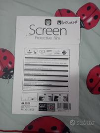 Cover flip bianca con piccole macchie poco visibili all'interno, fuori nuova dimensioni 12×19,5cm. Pellicola universale per 7 pollici nuova e sigillata.