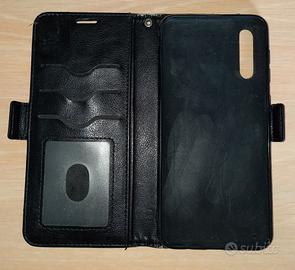 Cover in pelle nera a portafoglio per Samsung A50 in buono stato.