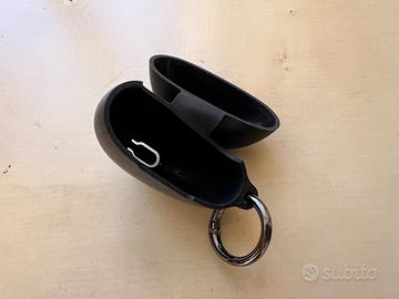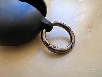 Cover in silicone auricolari Oppo Enco Buds 2, colore nero. Con gancio in metallo ad anello.