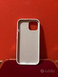 cover in silicone morbido per iPhone 15 color bianco opaco. La cover ha un design minimale ed elegante, con il logo sul retro e l'interno rivestito in morbida microfibra per proteggere il vetro posteriore del telefono da graffi e polvere. Caratteristiche: • Compatibilità: iPhone 15. • Materiale: Silicone "soft-touch" esterno (piacevole al tatto e antiscivolo) e interno in microfibra antigraffio. • Protezione: Bordi rialzati per proteggere lo schermo e il comparto fotocamera. • Colore: Bianco (White). Condizioni: L'articolo è in ottime condizioni, come si può vedere dalle foto. L'interno è perfettamente integro e l'esterno non presenta tagli o segni di usura evidenti.
