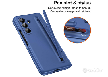Cover Integrale Samsung Z Fold 7 + Penna Stilo - Blu Vendo bellissima custodia integrale premium per il nuovissimo Samsung Galaxy Z Fold 7, colore Blu. È la protezione definitiva per chi vuole mantenere il telefono come nuovo senza rinunciare alla funzionalità. NUOVA Caratteristiche principali: 💎 Protezione 360°: Include la protezione per la cerniera (hinge protection) e una pellicola frontale in vetro temperato integrata. 🖋️ Penna Stilo inclusa: Riceverai anche la penna stilo con punta in silicone (scrittura fluida, zero graffi) e la custodia ha uno slot dedicato per non perderla mai! ✨ Materiali Premium: Realizzata in policarbonato rigido con finitura opaca "Skin-feel", morbida al tatto ma anti-impronta e antiscivolo. 📸 Sicurezza Fotocamera: Bordi rialzati per proteggere le lenti della fotocamera e lo schermo esterno quando appoggi il telefono. 🚀 Design Slim: Nonostante la protezione completa, mantiene un profilo sottile ed elegante. Dettagli tecnici: Compatibilità: Solo Samsung Galaxy Z Fold 7. Colore: Blu elegante. Stato: Nuova, mai usata (ancora nel packaging originale). Extra: Accesso facilissimo alla penna tramite tasto a pressione sullo slot. Perfetta per proteggere il tuo investimento con stile! 📦 Spedizione rapida