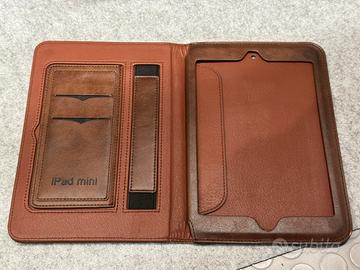 Custodia a libro in ecopelle per iPad Mini di prima e seconda generazione, in buone condizioni, presenta segni di utilizzo nei punti dove si piega per aprirla e chiuderla.