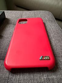 Custodia per iPhone 11 originale BMW M. Materiale in silicone,con all'interno alcantara per non graffiare. Stemma in metallo e in rilievo in basso nell'angolo M Motorsport.