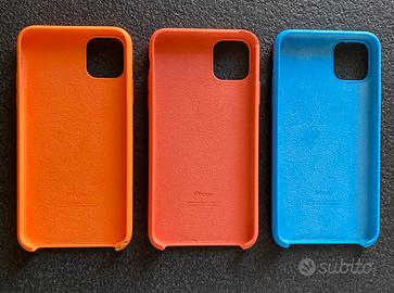 3 cover iPhone 11 Pro Max in silicone originali Apple. Usate poco. Colori come da foto (salmone, arancione e azzurro). Il prezzo è per tutte e 3.