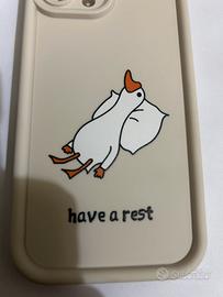 Materiale morbido, antiscivolo e resistente, con grafica simpatica di una papera che si riposa su un cuscino e scritta “Have a rest”.