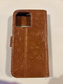 Vendo cover nuova Iphone 13 pro a libro in pelle con motivo floreale chisura magherica e porta documenti