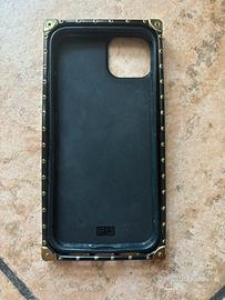 Design semi-rigido e resistente, con angoli rinforzati in spesso silicone dorato e cornice con simil borchie.