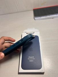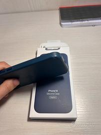 cover originale apple x iphone 14 colore strom blue silicone usata con segni di usura agli angoli ma funzionale valuto anche permute