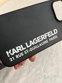 Cover nera in silicone per iPhone 14 pro max firmata Karl Lagerfeld.