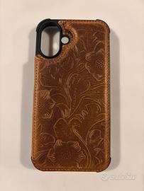 Vendo cover Iphone nuova Iphone 16 plus in pelle con motivo floreale, porta documenti e chiusura magnetica