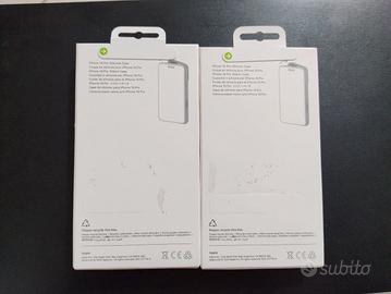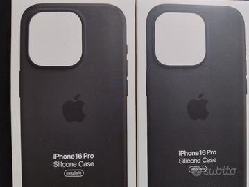 Vendo coppia di custodie in silicone per iPhone 16 Pro (colore Nero/Scuro). Le cover sono nuove, ancora all'interno della loro confezione originale come visibile in foto. Tecnologia: Supporto MagSafe integrato per ricarica wireless e accessori magnetici. Materiale: Silicone soft-touch con interno in microfibra. Stato: Nuove, mai usate. Info vendita: Prezzo: € 25 l'una (disponibile sconto per chi le prende entrambe).