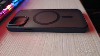 La cover è trasparente con bordo nero e supporto MagSafe integrato, che garantisce la massima aderenza ai caricatori e agli accessori compatibili.