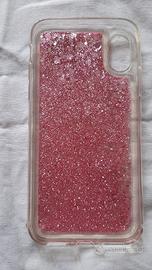 Usata ma ancora in ottime condizioni (solo qualche piccolo graffietto visibile in controluce). Cover per I Phone 8X in plastica trasparente con brillantini di colore rosa che si muovono a secondo del movimento.