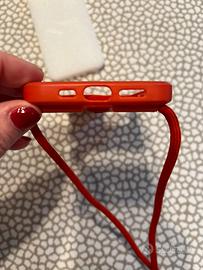 Cover rossa compatibile con iPhone 12/12 Pro, comn cordino tracolla, slidable fotocamera, supporto slot schede ( vedi foto ).