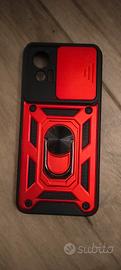 cover rossa e nera con supporto per telefono incorporato e copri fotocamera+ una cover trasparente in omaggio