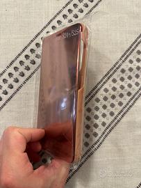 Vendo cover flip modello "Clear View Standing Cover" in colorazione Rose Gold. Nuova mai utilizzata. Compatibilità: Progettata per Samsung Galaxy S24+ e S25+. - Effetto Specchio: La parte frontale traslucida permette di vedere l'ora e le notifiche (con app dedicata o funzioni flip) e funge da pratico specchio quando lo schermo è spento. -Funzione Stand: Si piega facilmente per tenere il telefono in orizzontale, ideale per guardare video o film in totale comodità. - Protezione Integrale: Protegge sia il retro che lo schermo da graffi e piccoli urti. - Design Slim: Sottile e leggera, non appesantisce il design del tuo smartphone.
