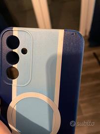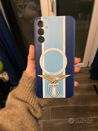 Cover della Lazio per SAMSUNG GALAXY A 34. Ha già applicato sopra il cerchio magnetico per attaccare sopra il portafoglio. Perfetto, ha solo una piccola sbeccatura nell’angolo superiore destro.