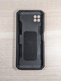 Cover per Samsung Galaxy A22 5G con rifiniture in colore nero su sfondo argento 📱 Stand telefono integrato