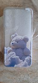 Custodia trasparente per Samsung Galaxy A55,nuova in confezione originale. La Cover trasparente presenta la figura di un orsetto tra le nuvole.
