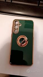 Nuova elegante cover per Samsung Galaxy A55 , colore verde come da foto con bordi dorati, con anello posteriore girevole, confezionata come da foto erroneamente acquistata.