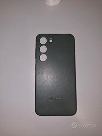 vendo cover Samsung per il galaxy s23, originali, usate poche volte. sono 2 cover in pelle verde (a una ho aggiunto un anello per l'aggancio magsafe) e una in silicone blu. vendo in blocco a 15 singole a 7 per info contattatemi
