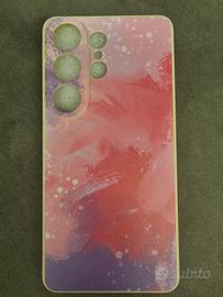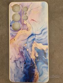 Set di due cover in silicone per Samsung Galaxy S26 con design unici. - Cover con fantasia astratta rosa e viola. - Cover con fantasia astratta blu e oro.