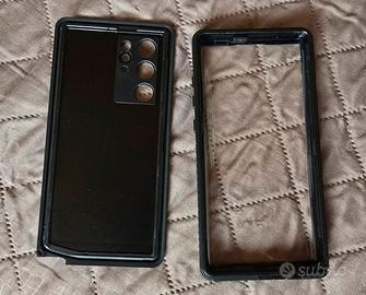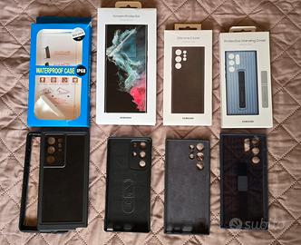 Custodia S22 Ultra, due originali Samsung, una con standing una in silicone nera, complete di scatole, come nuove utilizzate una volta ciascuna, una nera non originale mai usata, una waterproof utilizzata una 10 di volte, inoltre una pellicola display originale Samsung (una è già stata utilizzata).
