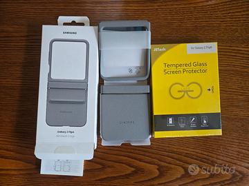 vendo cover originale Samsung per Z Flip6 nuova mai utilizzata con i vetrini di protezione per lo schermo esterno. Tutto nuovo.