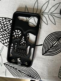 Vendo cover di gomma nera con design traforato a forma di teschio, perfetta per chi ama lo stile dark o alternativo.