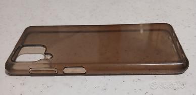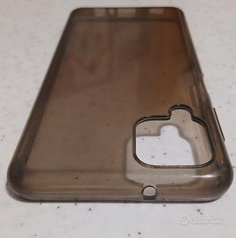 Cover in silicone morbido, colore scuro semi-trasparente, idoneo per Samsung A12. Articolo come in foto.
