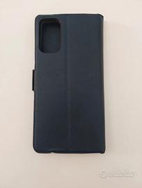 1 cover smartphone Samsung galaxy m52 5g materiale ecopelle colore blu nuova mai usata con la sua bustina originale + 4 cover smartphone Redmi Note 10 Pro come nuove.