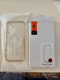 Vendo cover spigen ultra hybrid per iphone 16, usata soltanto in viaggio (15 giorni), con ancora scatola e pellicolina protettiva.