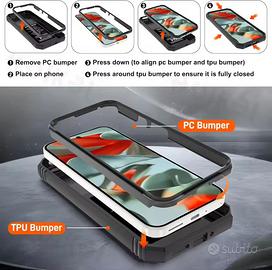 Con bumper interno e sportello fotocamera per una super protezione, anello posteriore per maggiore presa e disco metallico posteriore per utilizzo supporti magnetici.