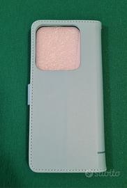 Bellissima custodia per Xiaomi 14 Pro, nuova. - Colore azzurro pastello - Design con gatto e farfalla - Tracolla inclusa - Chiusura a lembo