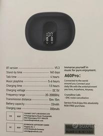 Cuffie a60pro bluetooth nuove pagate 40€ vendo per inutilizzo complete di tutti gli accessori accetto solo contanti non spedizione solo ritiro zona Lecce oppure merine solo gente realmente interessata grazie non perditempo per info contattare grazie