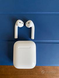 Cuffie Apple Airpods 1 generazione, originali, complete di custodia e scatola; usate pochissimo, perfettamente funzionanti, ma a causa di un bug software che interessa tutta la prima generazione di Airpods (la Apple deve rilasciare un aggiornamento), in chiamata di disconnettono dopo circa 40 secondi ed in riproduzione musicale dopo pochi minuti. La custodia di ricarica funziona perfettamente. No perditempo.