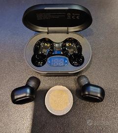Auricolari Bluetooth di ottima fattura, pratici e funzionali, compatibili con tutti i sistemi bluetooth, PC, Android, Apple etc etc. Le cuffie hanno una batteria di 40 mah cadauna ed una box di ricarica molto piccola da 300 mah. Hanno un buon suono non metallico sufficentemente alto in tutte le occasioni. Si ricollegano facilmente e in maniera immediata , senza problemi di disconnessioni. Sono dotate di una luce a led che indica la carica e di un pulsante per attaccare o prendere la chiamata senza tocchi accidentali. La batteria copre sempre un intera giornata di utilizzo, e se si scaricano basta inserirle nella propria box di ricarica che con una sola ricarica riesce a ricaricare 3 volte gli auricolari. È inoltre presente un piccolo display led che indica la percentuale di carica residua della box. Per la ricarica e dotato di connettore type-c come visibile in foto. Dichiaro che il prodotto viene venduto nuovo nella sua originale confezione.