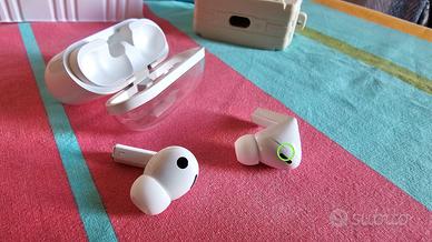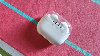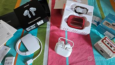 Vendo per passaggio ad altro modello, cuffie auricolari wireless bluetooth Samsung Galaxy Buds3 Pro colore: Bianco Codice: SM-R630NZWAITV Acquistati da sito ufficiale Samsung a novembre 2024, ancora in garanzia ufficiale (fornisco fattura di acquisto Samsung). Condizioni perfette, usate poco: mai cadute, perfettamente funzionanti e tenute sempre in custodia protettiva in silicone (che regalo insieme alle cuffie) Segnalo solo per correttezza da maniaci, una microlesione su uno dei due auricolari (che ho cerchiato in foto in verde) quasi impercettibile e che non compromette assolutamente il funzionamento delle cuffie. Davvero leggere e pratiche col touch per alzare volume, rispondere, gestire la musica e l'assistente virtuale, con una qualità sonora e resa davvero eccezionale. Qualsiasi prova. I miei feedback e le foto parlano da sole, ma posso fornire altre foto se necessario. Vendo con confezione originale, tutti i gommini originali mai usati, cavo usb C originale mai usato, manualistica, ed inoltre: - 1 custodia in silicone morbida a forma di musicassetta - 1 custudia rigida (rossa) Specifiche tecniche: Versione Bluetooth: Bluetooth v5.4 Sensori:Accelerometro, Giroscopio, Sensore Hall, Sensore di pressione, Sensore di prossimità, Touch Sensor, VPU(Voice Pickup Unit) Peso Auricolari (g) 5.4 Numero di microfoni:6 Altoparlanti: Enhanced 2-way Ambient Sound: Sì Controllo adattivo del rumore: Sì Cancellazione Attiva del Rumore: Sì Voice Detect: Sì Audio 360: Sì Rilevamento sirena:Sì Codec Audio: AAC, SBC, SSC(Samsung Seamless Codec), SSC-UHQ Equalizzatore adattivo: Sì Cancellazione adattiva del rumore: Sì Super Wide Band:Sì Durevolezza: IP57 Samsung Find,Bixby Voice Wake-up,Neck Stretch Reminder,Comandi vocali ASTENERSI PERDITEMPO, INCOMPETENTI, INDECISI: Comportamenti scorretti verranno segnalati. Euro 140 (trattabili se realmente interessati). Preferisco consegna a mano a Roma Sud, ma posso spedire tranquillamente con TuttoSubito.