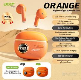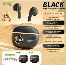 auricolari nuovi wireless Acer 2025 tws offrono un suono stereo con bassi profondi e riduzione del rumore dalle chiamate con una durata della batteria lunga adatta sia per sport che percorsa.