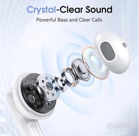 Audio Immersivo Hi-Fi e Riduzione del Rumore ENC: Auricolari Bluetooth antirumore sono dotati di unità driver in grafene da 13mm, combinata con decoder ad alta risoluzione e tecnologia di codifica audio AAC/SBC, offrendo bassi profondi e potenti e medi ricchi e dettagliati, per un'esperienza musicale Hi-Fi di alta qualità.4 microfoni integrati nelle cuffie wireless utilizzano algoritmi di intelligenza artificiale per rilevare ed eliminare automaticamente il 90% del rumore ambientale