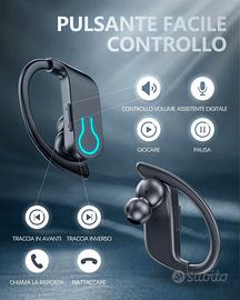 Cuffie Bluetooth Sport, senza fili con Auricolari Bluetooth 5.3, Qualità del suono ad alta fedeltà Auricolari Bluetooth, 120 Ore Wireless Doppio Display LED, Tipo C, IPX7, progettato per lo sport