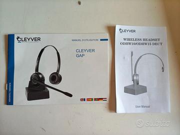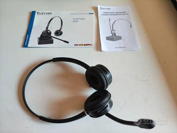 Cuffie senza filo Dect Cleyver HW15 con base di ricarica, da abbinare ad un telefono cordless di qualsiasi marca per rispondere alle telefonate e conversare a mani libere, con ampia autonomia, fino a 6 ore di conversazione. Il raggio di azione è fino a 150 metri e il tempo di ricarica completa di 2 ore. Qualità audio veramente molto buona.
