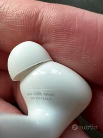 Vendo come da titolo la cuffietta destra degli airpods pro di seconda generazione. Condizioni pari al nuovo usata veramente poco. La cuffietta ha il codice A2698. Perfetta se avete perso o rotto la vostra cuffietta sinistra. ATTENZIONE! La cuffietta in questione è ORIGINALE al 100%! Quindi prima di acquistarla per sostituire la vostra siate sicuri che la vostra custodia e l’ altra cuffietta siano originali se no non si accoppieranno!! Se le avete comprate in negozio o su amazon state tranquilli.