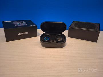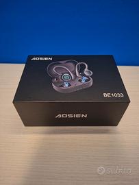 Cuffiette ergonomiche senza fili per chi ama correre e fare attività fisica, si agganciano sopra l'orecchio e non si muovono più. -Ricarica : le cuffiete per ricaricarsi si dispongono nell'apposita custodia , la custodia per ricaricarsi ha una presa USB-C ; ogni cuffietta ha un'autonomia di circa 6 ore , e la custodia può ricaricare le cuffiette circa 4 volte se carica al 100%. Caratteristiche aggiuntive : facile combinazione di tocchi per alzare/abbassare volume, rispondere a chiamate e mettere in pausa direttamente dalle cuffiete. Marca e modello : AOSIEN BE1033
